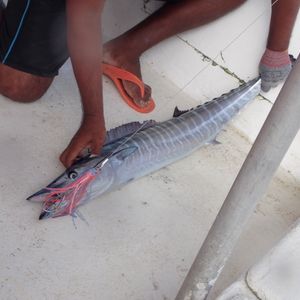 午前中は魚が釣れたので、すぐに船の上で捌いて刺身をふるまってくれました。