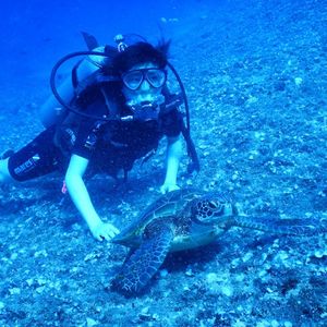 今回体験ダイビングで初めてスキューバダイビングに友達と挑戦しました!スノーケリング初めてそれが楽しくてやろうと思ったのがきっかけでしたが、友達も私もさいしょすっごく怖くて深く潜ってなんかあったらどうしようと色々考えていました。インストラクターとしてYu**さんがついてくれて日本人の方で日本語で説明してくださりとっても心強かったです。実際に潜る前に基本的なコツなどを教えてくれて、何も知らない私たち2人にとって、とても助かりました。実際潜ってみたときは教えてもらった動作のやり方を実践して練習してから潜ったので全く問題ありませんでした。潜る前に腰抜かしてた時はインストラクターさんが励ましてくれて勇気が持てました。6メートルくらい潜りましたが今まで写真で見たことしかないような景色が自分の目で見ることができてとても心が安らぎましたっ!!!感動的でしたっ!!今までやらなかった自分がもったいないっ!!!また海の中で写真を撮っていただいたり自分たちで持ってきたカメラで写真をとってとっても楽しむことができました!30分前後潜りましたが私にとっては10分くらいととても短く感じました。また始めは口呼吸がとても苦手で鼻で呼吸してしまうことがよくありましたがだんだんやっていくうちに慣れてきて出来るようになっていきました。最初とても怖がってたのが嘘なくらい2回目は落ち着いて海に潜ることが出来ました!!とってもいい経験ができていろんな世界が見れてとても満足です。次はインストラクターさんがとっても良かったので同じところでライセンスを取ろうと友達と話しています!今するかしないかで悩んでいらっしゃる方!ぜひ体験してみてください!とても安心できたしやって後悔はありません!!