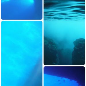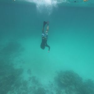 潜ってバブルを出してくれたり、たくさん写真を撮ってくれました。水中は噂通り綺麗な青で、底までよく見えます。