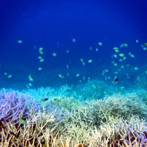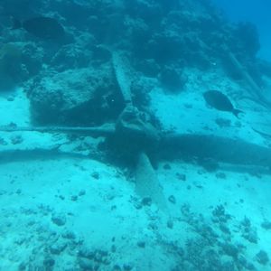 海底に眠る沈没船や戦闘機などの残骸や魚の群れ・・