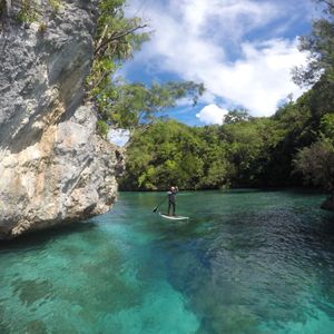 オープンで風を感じる船でのまず連れて行ってもらったのは少しの時間だけ海の下から現れるビーチ!いつものコースのビーチは現れる確率が低かったので、行き先を変更してくれました!! 白いビーチと、そこから離れるにつれて水色から青にわる海の色のグラデーションは最高で本当に天国へやってきたような感じがしました。なにもかも忘れてゆったりとした時間を過ごすことができ、この楽園でランチ。お弁当は優しい味付けの日本食でとても美味しかったです。私はこのビーチでクラゲに刺されてしまったのですが、ガイドさんはすぐに手当てをしてくれて即復活しました!ここでSUPの練習もします。少しビーチから離れてみると、なんとウミガメをみることができました!ビーチが水の中に消えてしまう前に再び船に乗り、波の少ない川や湖のような海の入り組んだ所に到着。ここをSUPで入っていきます。ここには洞窟や滝があり、魚、鳥、クラゲなど生き物もいます。とても静かな場所で、心が落ち着きます。自然と自分が一体化したような気持ちに…!そして最後にはシュノーケリング!餌をあげるとこれでもかというくらいお魚がよってきます。色々な種類の魚がいました。私が一番気に入ったのはサヨリのような魚の群れでした。始めから終わりまで本当に大満足のツアーでした!今回の旅行で一番楽しかったです。ちなみにツアー中にガイドさんが写真を撮ってくれ、滞在しているホテルに届けてくれました。