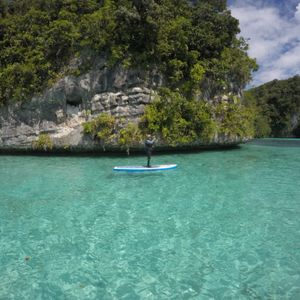 以前から興味のあったスタンドアップパドルボート(SUP)をパラオにて初挑戦することができました。