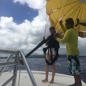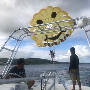今年12月に家族4人で10回目のグアム旅行の際、今まではスキューバー・カンパニーを利用していたのですが、パラセーリングの見学者の値段が割安になることから初めて利用しました。初めて利用する会社だったので、少し不安もありましたが、どなたも気さくな方で自分の下手な英語でも楽しくコミュニケーションを取れました。又、空いていたこともあり時間いっぱいまで楽しませて頂きました。