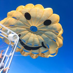 パラセーリングは少し沖合に出た後、ニコちゃんマークの可愛いパラシュートで浮上!