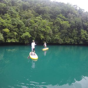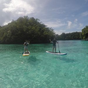 パラオの海はマリンレイクに入ると本当にびっくりするぐらい波も風もないので、ボードの上に立って漕ぎながらのんびり海の様子をよく見るも良し(魚はもちろん、マイタイ、サメの子供、くらげが泳ぐ様子も見れました。高い目線から見るので見やすいです。)、疲れたら座って漕ぐもよし、寝そべって空を仰いで鳥の声に耳を傾けるも良し・・と本当に自然の中で癒されます。