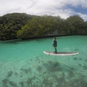 泳げないうえに、運動神経もさほどない私ですが、15分ほどの練習でゆっくり前に進むことができるようになり、先生と友人と共にSUPでパラオの海を散歩しました。