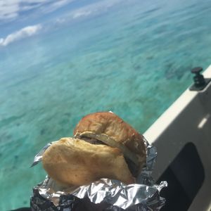 お昼のお弁当は日本人の方が作ってくださってるので、大変美味しく頂きました。また、キャプテンが釣った魚をお刺身にして頂きました。これがホント美味しかったです。