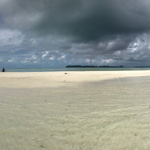 船のスピードが遅くなった先にはうっすらと白く長い、ビーチのそうなものが見えます。30分ほどで潮が引きビートが現れるとのこと。