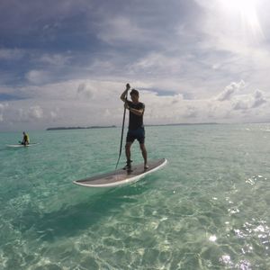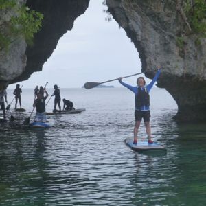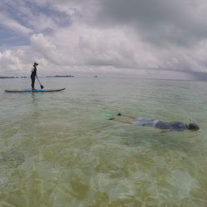 大海原の浅い所で練習したスタンドアップパドルボートはバランスを取るのが難しかったですが、360度綺麗な海での体験は最高でした。1人1人丁寧にサポートして頂き、ボードに立てる事が出来ました。海の上に立ってプカプカ浮かぶ感覚は何とも新鮮な感覚です!オールで漕ぐバランスに慣れるには体験だけでは時間が足りないかもしれませんが、海面に立つという体験をするだけでも十分価値があると思います。ボードに座って波に任せて揺ら揺ら浮かんでボーッとするのも時間を忘れてリフレッシュ出来ました。私達のボート以外誰もいない島での昼食のサンドイッチと、釣りたての魚のお刺身の美味しさも忘れられない思い出です。大きな魚を観れるように探して頂いたスノーケリングポイントも文句無し!アットホームできめ細かいご対応に感謝です✨また行きたいと強く思った旅行になりました。