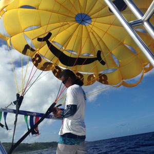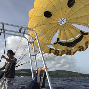 まず初めに行ったのはパラセーリング、グアムの海で行う空中散歩は格別でした。途中、パラシュートをわざと水面ギリギリまで降下させられスリル満点でした。