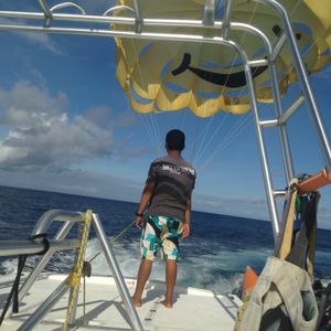 パラセーリングを初めて楽しみました。ハーネスタイプでとってもエキサイティング!ジェットスキーも思ったより長く感じて満足〜〜スタッフは親切で貝殻もプレゼントしてくれました。いい思い出になりました。