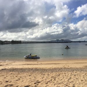 マリンアクティビティは、パラセイリング、バナナボート、ジェットスキー、シュノーケリングの順番で体験しました。たまたまなのか、全て貸し切り状態でした!宿泊先のホテルからビーチまで送迎がありました。パラセイリングは、ボートで沖まで出て行いました。風が気持ちよく、グアム島や水平線を一望できるとてもいい眺めで感動しました!パラセイリングが終わると、違うビーチに車で移動してから、その他のアクティビティをしました。周りが工場地帯のような場所だったので少し不安になりましたが、きれいな海でした。バナナボートは、ジェットスキーで引っ張られ、スタッフの方が面白く、とても楽しめました!長すぎるのではないかと思うくらい、長い時間してもらえました。ジェットスキーも初めてだったので、最初は運転が難しかったですが、楽しく運転できました。水しぶきがすごくかかり、目に入ることがあったので、次からはサングラスやゴーグルを持っていこうと思います!シュノーケリングは、陸から装備を付けて沖のほうの浅瀬まで泳いでいきました。