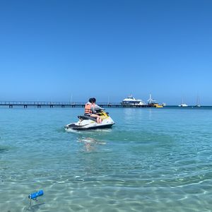 パパは、水上ジェットスキーの運転が楽しかったと話しており、小学生の子供達は、パラセイリングや海上トランポリンがとても楽しかったと話しています。