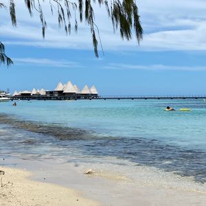 息子の結婚式で初めてニューカレドニアに来ました!残念ながら私達夫婦はメトル島の水上コテージには宿泊できなかったのですが息子夫婦が宿泊するメトル島に行ってみたくなりツアーに参加。最高でした!マリンアクビィが充実しており、50代の私達にも安心してマリンスポーツをする事ができました。マリンジェット20分、SUP20分、カヌー40分、SUPやカヌーで水上コテージの周りにも行く事ができ、沢山のカメ達にも遭遇。綺麗な海で沢山の写真やビデオを撮る事ができ良き思い出が増えました。後、日本語を話せるスタッフが一緒なのでそれもまた安心できる要因でした。ただ、日差しが日本の3倍なので島には日焼け止めを持っていき度々塗った方が良いかと思いました。マリンシューズは必須です。