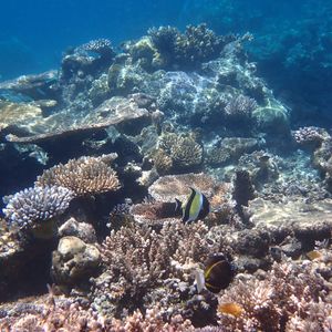 続いてはスノーケリング。これまでに見たサンゴ礁の中でもトップ3に入る美しさで夢中で泳ぎ回ってしまいました。