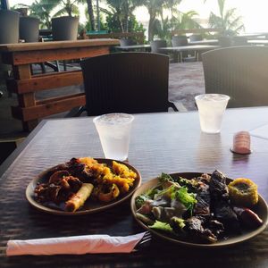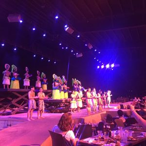料理はブッフェスタイルで最初の1時間くらいでした。種類ほまぁまあありますが、とても美味しいというのは無かったようなきがします。ブッフェスタイルなので仕方がなかさいかもしれません。ただサンセットは最高にきれいですし、バックで生コーラスも最高によかったです。雰囲気は満点でした。その後のショーもとても迫力があり、観客も参加型でとても楽しめる内容で大満足でした。おわってからも、写真をとってくれたりするので、家族でも楽しめる内容だと思います。