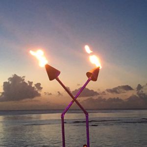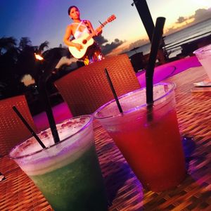 海が夕焼けに染まって行くのを見ながらの食事と、暗くなってからのダンスショーは最高でした。