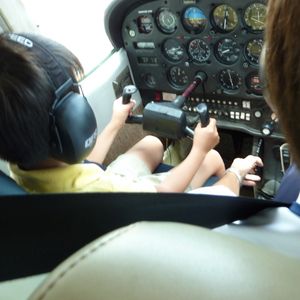 4人乗りのセスナは、当日風が強く揺れましたが、ジェット機では味わうことの出来ない雰囲気です。基本は子供に操縦させてくれて教官はエンジンパワーの調整を・・・。セスナに乗り込み教官が、子供に「操縦桿は、右に左にぐんぐん動かしてもいいよ」と。子供も、右に操縦桿を傾ければ、セスナも右に・・・。というのが良いみたいで、すごく満足していました。親は、スリル感で少々冷や冷やでしたが・・・・