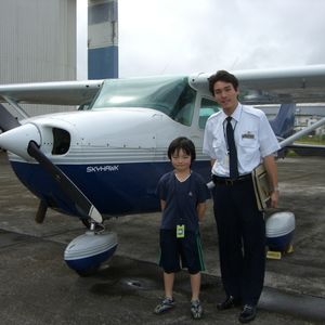 このツアーを見つけた時に、即参加を決めました。理由は6歳の息子がいろいろな体験をし、夢を持って生きてほしいという思いからでした。ホテルに迎えに来てくれたのはパイロットスタイルの素敵な方でその方が最初から最後までお世話下さいました。説明を聞いている息子はこれから起こる事を解らない様で浮かれた姿に不安を感じつつもパイロットの方とセスナの前に立った息子は事の重大さに気ずき、操縦席につき説明を聞き、いざ出発。後ろで見つめる私は頼もしい息子の後ろ姿見つつヘットホンから聞こえるパイロットの説明を聞きながら、空の上からのグアム観光を楽しみました。着陸は本当に息子が操縦?しているのかと思うほど素敵な体験でした。このツアーは$200も高くないと思いましたし、お友達にも他の皆さんにも推薦します。帰りも行きたい場所に送り届けてもらえたので、それからのスケジュールもスムーズになりました。帰りの飛行機の席からはねが見えるところでそのはねの動きを見て息子は、飛ぶときはこうやって、曲がるときはこうやって、など話してくれている姿をみて、今回の体験は間違い無かったと確信しました。お世話になりました。ありがとうございました。