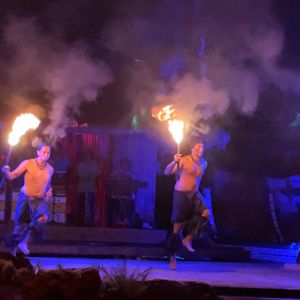 お店に到着してすぐ大雨強風で、室内ではありますが、ショーをするところは屋根がないのか、前方の席は大変そうでした。しかし、すぐ弱まったので安心しました。2列目の席だったのでよかったです。食事はバイキングでお肉やお海鮮も美味しく頂きました。なんと言ってもショーのクオリティが凄くて感動しました。次々と歌や踊りで観るものを飽きさせない工夫がされており、観客を楽しませる演出が素晴らしいと思いました。グアムに来たらここは外せない観光スポットだと思います。店員さんも日本語を話せる方もおり、安心して来店できます。素晴らしい夜をありがとうございました。