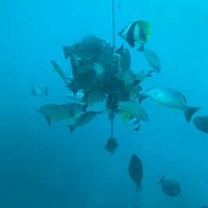 色とりどりの魚と、ダイバー、小型のサメも見れました。