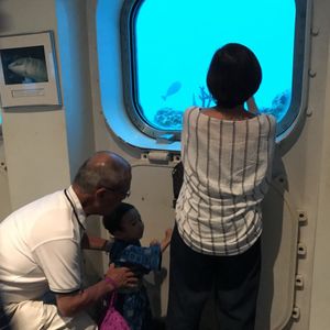 日本の水族館等を思うとガラスは汚く見づらい等ありますが、子供達はサメがいた、黄色いお魚がいたと、大変喜んでいました。