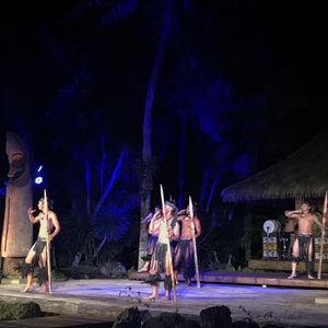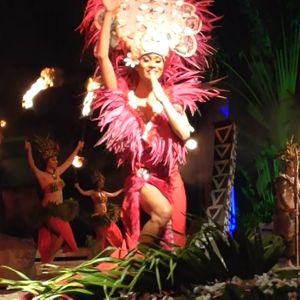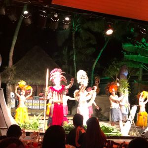 体験談などを見ても評価がよくて楽しみにしてたのですが、思っていた以上に迫力があり、ステージ上だけでなく私達がご飯を食べているところにまで来てショーをしてくれました!終盤にはお客さんの中からランダムに数人選ばれて舞台の方に上がっていました。私の彼氏も選ばれていましたが、一体感もあり、やはり楽しかったです!またショーだけでなく、ご飯の最中に歌を歌いに来てくれて、南国感がグッと上がり良い雰囲気でした。