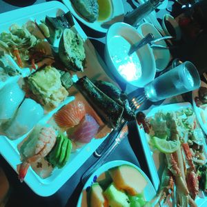 料理はお寿司、ステーキ、カニなど豪華なものが多く、とても美味しかったです。