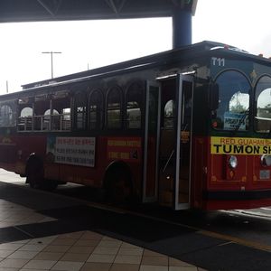 今までは現地でバスチケットを買っていましたが、事前にクレカ精算出来るので便利でした。グアムの空港でチケットの受け取り先が分からず迷いましたが、荷物を受け取って出たところの正面右隣のラムラムツアーのデスクにいる人にバウチャーを見せたら分かってくれました。