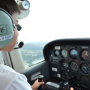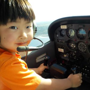 自ら操縦桿を握って空の旅へ、私たち親の方が緊張してしまいました(笑)