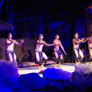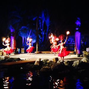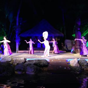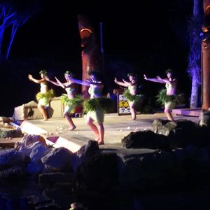 父と二人で利用させてもらいました。会場は広すぎないので、どの席からもショーがよく見える感じでした。私たちの席は前から二番目?あたりでしたのでとてもよく見えました!料理も種類が多く、スペアリブやチキンなどのお肉は、でかくてびっくりしました。他、寿司、カレー、冷菜、サラダ、カニ、シーフード系料理などなど。フルーツ、デザートも美味しかったです。特にアイスクリームが6種類もあって嬉しかったですね。一通り食べ終わってゆっくりできた頃合いでショーがスタート!たっぷり1時間くらいはやっていたと思います。最初ゆったりな感じから、段々と激しい感じの踊りになって、会場も大盛り上がり!何人かのお客さんはダンサーに連れて行かれて一緒に舞台で踊ったりなど、とても楽しそうでした〜 火を使ったパフォーマンスが個人的には迫力があって好きでしたね。ただ、飲み物が水だけなので、他ソフトドリンクやお酒が欲しい方は個人で注文するものです。ソフトドリンクくらいは飲み放題にして欲しかったかな。それ以外は本当大満足でした!初めてのポリネシアンショーで大変楽しませていただきました。またいつか利用したいと思います!