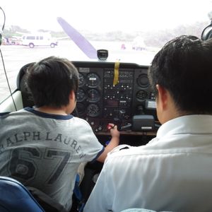 2度目の体験ですが少し緊張気味の息子でしたが、いざ飛び立つと楽しくて 旋回や上昇下降を何度もやらせて頂き、満足してましたがさらに着陸まで操縦桿をにぎってました。来年も絶対乗るそうです(^^)