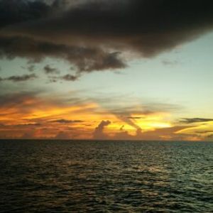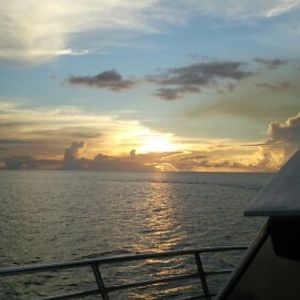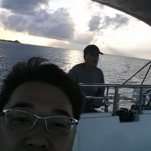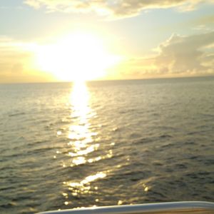 少し雲が多く、サンセットは微妙だったけど、イルカツアーでも無いのに、イルカの大群と遭遇し、しばし並走! う~、風が心地よい!