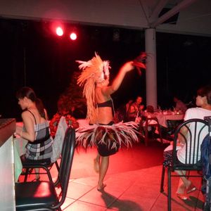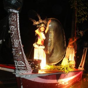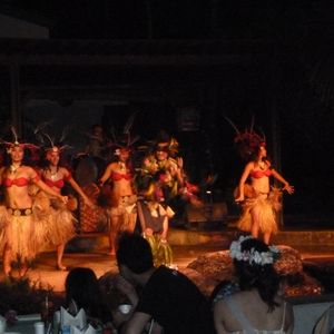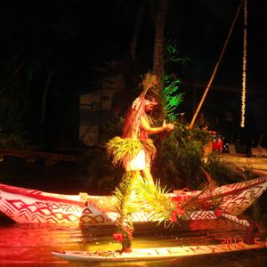 もうお腹いっぱいってところで会場が暗くなりショーがスタート。南国美人が舟に乗って舞台に登場。鳴り響く太鼓のリズムと激しい南国の踊りと甘よかなボーカルのおじさんの歌声。やっぱ南の島に着たんだな~って改めて実感。