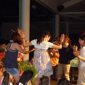 ショーも佳境かなってところで踊り子達が客席に歩み寄り、長女を連れて一緒にポリネシアンダンス!思わぬ事態に娘も乗りのり!良い思い出写真が撮れたぞと喜ぶお父さん。