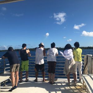 船に乗りイルカ達にさっそく遭遇できました。その後、少し移動して、ウミガメに会うために海の中へ。泳ぎが得意ではない人は浮き輪につかまって海に入れるので安心です。ウミガメ5〜6匹見ました。海もとても綺麗。子供達(小6、小2)も大喜び。そして港に戻って車でビーチへ移動し、バギーと洞窟探検、シュノーケリングなど。バギーは緊張、洞窟は一瞬ですが、なかなか出来ない体験なので良かったです。グアムに来たらまた参加したいと思います。お昼も美味しかったです。ありがとうございました。