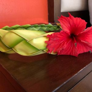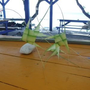 ココナッツを飲ませてもらったり、ココナッツの葉で花や魚を作ったのをくださったり洞窟探検したり、バイク乗ったり、カヤック、ペダル、卓球、バトミントン、全部しました。