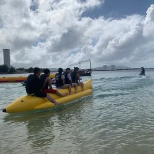 2019.12.15 午前中にJETとバナナボート♪こちらも、激しいバナナでしたが、とっても楽しめました!7名の参加で、ジェットを運転するのは全員初挑戦でしたが、分かりやすく説明してくれてよかったです!英語は出来ませんが、なんとなりました(^-^)泳げない事を伝えると、バナナも私の方のチームは優しく運転してくれました!ありがとうございました!