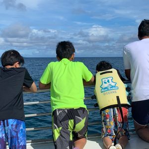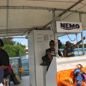 船は小さなボートでラグーンの外はめっちゃ揺れます。ポイントまで15分くらいですが、自信のない方は酔い止め飲んだ方がいいかも。2日ともアジアンは自分だけで、自分はその方が良かったけど、ガイドはフランス語か英語なので、経験本数の少ない方はどうだろう。。