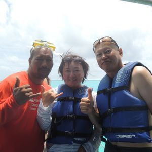 7月末、初グアムへ。朝、ホテルに迎えに来ていただき30分ほどで船場へ到着して、船にのりました。日本人家族三組でした。海亀は船から何匹か優雅に泳いでいるのが見えました。イルカは昨日は見れたけど向こう一週間見れてないのでどうかなぁて感じでした。船長さん必死に探してくださってましたが見つからず。あきらめて海亀ウォッチングへ、船から深い海へ降ります。五歳の息子には怖くて無理でした。シュノーケリングで海に潜ると想像以上の数の綺麗な魚がいました。綺麗な海を堪能していると、他の船から無線が入りイルカがいると言うので急いで船に乗り込みました!会えました!イルカ達!船の横を一緒に泳いでくれます。親子イルカも見れました。感動。可愛くて子供たちも大興奮。いい思い出になりました。その後は時間の許すかぎりまた海亀ウォッチングを楽しみました。船長さんも陽気な方で冗談を言って盛り上げてくれ楽しかったです。