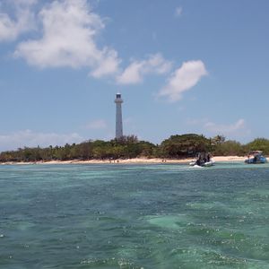 島の灯台に登っていただくと、サンゴ礁近くの大変きれいな海をご覧いただけたりと盛りだくさんなため