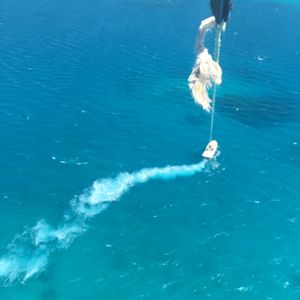 オフィスに着くと、約6グループ(1グループ約6人)に分けられ、そのグループごとに行動していきます。初めはイルカウォッチングでした。私のグループはたまたまバナナボートで、他のグループは船に乗ってそれぞれイルカウォッチングしました。正直バナナボートでのイルカウォッチングは超最高です!船より間近で見れるのでここは運かと!!その後ビキニアイランドへ行き思い思いに写真撮影をしました。ちなみにスタッフさんがカメラを持っていて写真を撮ってくれます。最後に30ドルで写真は買えます(USB型)。その後ジェットスキー、シュノーケリングという流れで前半戦は終わりました(13時すぎくらい)。お昼を食べその後は順番にパラセーリングです。パラセーリング終了後、バナナボート、椅子型のボート、釣り、カヤック等自分がやりたいものをやるっていう割と自由時間だった気がします。その後は水着のまま車でホテルへ戻りました。ざっくりと流れはこんな感じです。