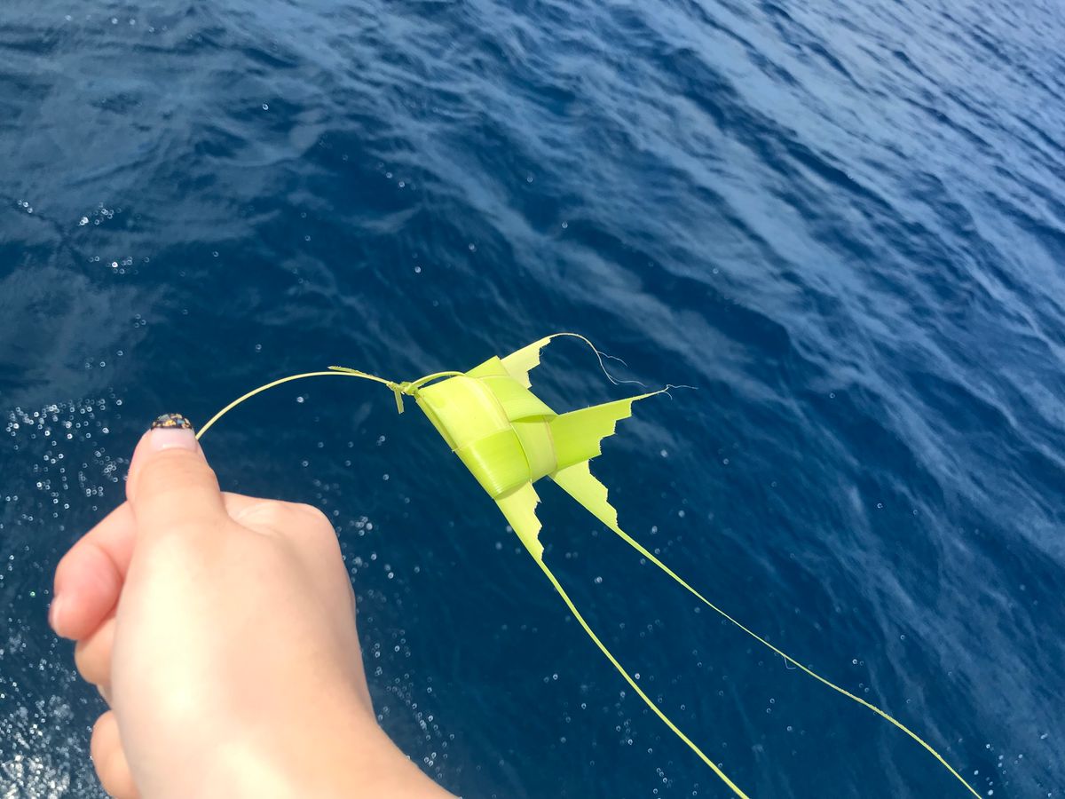 船での移動中は船長が器用に草で魚や風車を作ってくれていいお土産になりました。