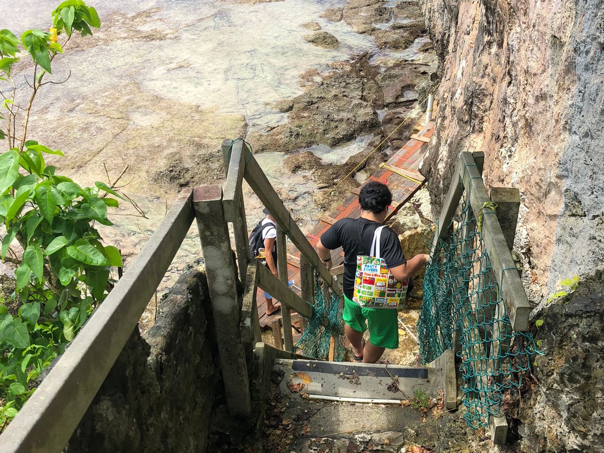 ビーチに着くまで足場の悪い場所や階段があり良く言えば探検ですね(笑)歩きにくい場所があるので動きやすい履きやすいマリンシューズがおすすめです。