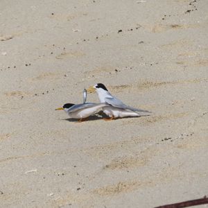 保護区近くのエリアでは、ヒメアジサシたちが浜辺でお休みしているので、接近して観察できました。小さくて可愛らしい鳥です。