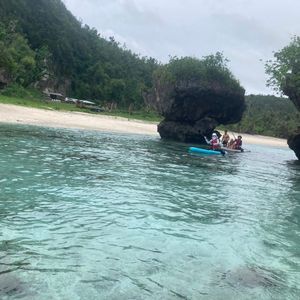 8/13は雨季でかなりの雨が。ツアーは中止かと思いきや決行でした。現地に到着する頃には雨もあがりパラセーリングをすることに。家族3人でしたが、最初に私と高一の娘で楽しみ、他の御家族が飛ばれた後に、主人とまた娘が2回目飛びました。風が強かったので、体重が軽いと振り回されるそうで2人での飛行という事だったので、娘は2回も飛べてラッキーでした。船が止まった時は揺れるので酔い止め必須です。その後場所を移してジェットスキーとバナナボート楽しみました。ジェットスキーは前が見えなくなる程顔に海水が掛かります。後は好きな遊びが器具を無料で借りれて遊べます。supも体験しました。日本語通じますので大丈夫です。楽しい一時をありがとうございました。
