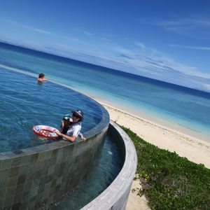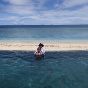 海は綺麗で波もないので泳げます。プールは小さめですが充分です。