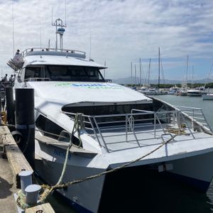 ホテルまでお迎えに来ていただき、港まで。受付後、40分くらいありますが、すくそばにショッピングセンターがあり、時間潰せます。忘れ物やおやつなども買えます。私たちは昼用にパンやフルーツなど持ち込んで船に乗りました。
