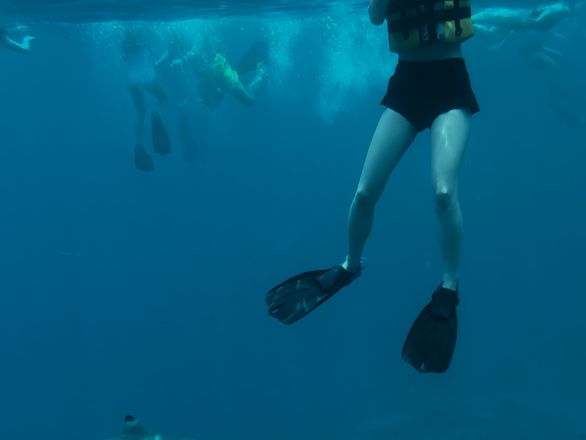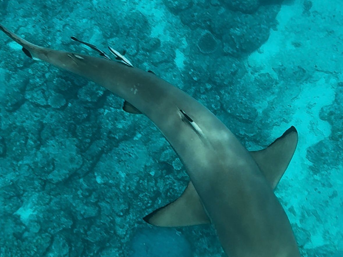 一緒に泳ぐのはやさしい性格のサメだから大丈夫かもしれないけど、凶暴なサメも乱入してきて襲われたりしないのかなあ、パニック映画ではよくあるパターンだなあと当初は不安を感じて緊張もしていましたが、海に潜ってみると絶景の連続に大興奮。集まってくるのはおとなしいサメと綺麗な魚たちでしたので海の中で繰り広げられる絶景を安心して楽しめました。