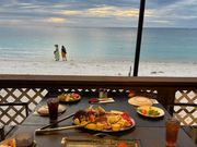 夕方の海を見ながらバーベキューができて最高でした。サラダ、ご飯、味噌汁、飲み物が飲み放題で食べ応え抜群のお肉と海鮮類がたくさん乗ったお皿がボリューム満点でした。 オプションでポテトや追加のお肉、海鮮等が頼めますが頼まなくても満足できるくらいのボリュームでした。ちなみに大人(男2、女1)でいきましたが、全部食べ切ればもう食べれないくらいお腹いっぱいになりました。 景色も綺麗で海外旅行にぴったりなディ